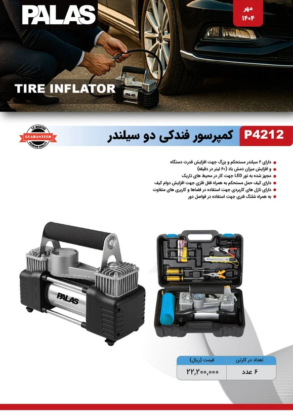 کمپرسور فندکی ۲ سیلندر واقعی پالاس با لوازم۲٬۷۹۰٬۰۰۰ 21%