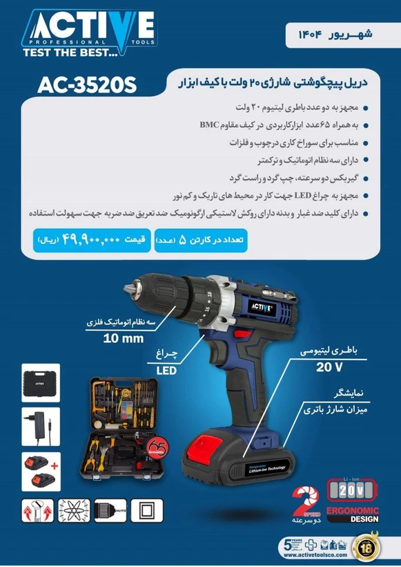 ✔️ مجهز به دو عدد باطری لیتیوم 20 ولت