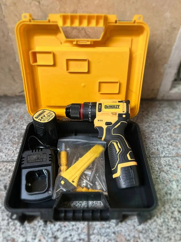 ✔️ لوازم دار شامل : کاتر ، رابط فنری ، بکس ، مته و سری پیچ گوشتی